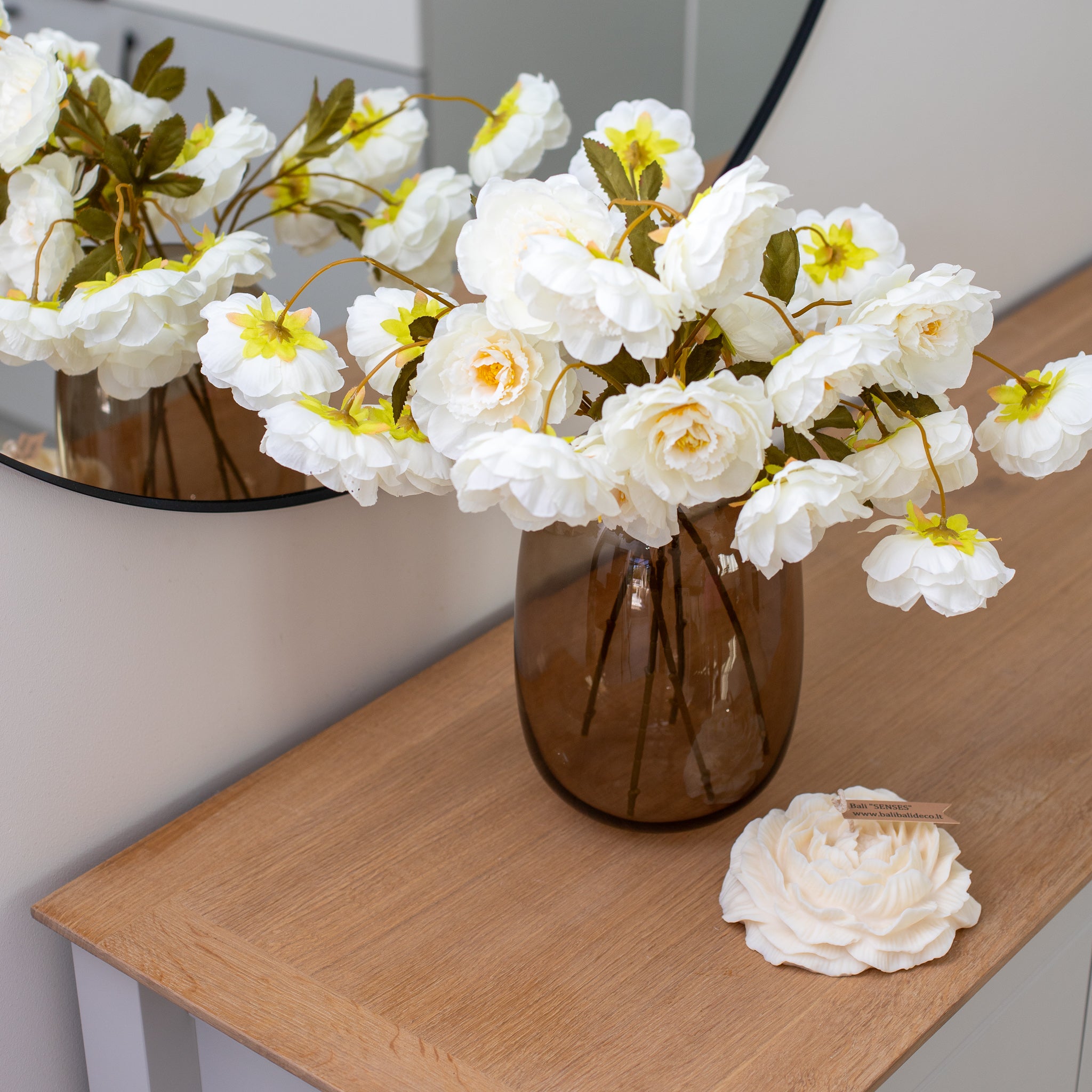 The vase is sold without flowers.