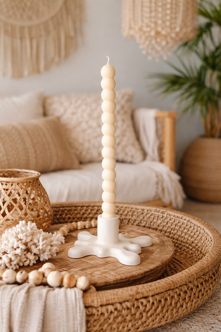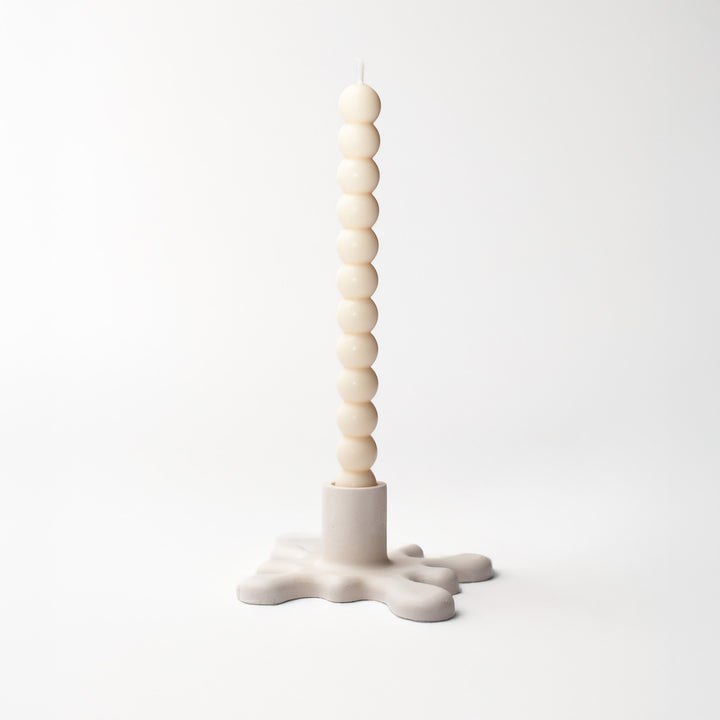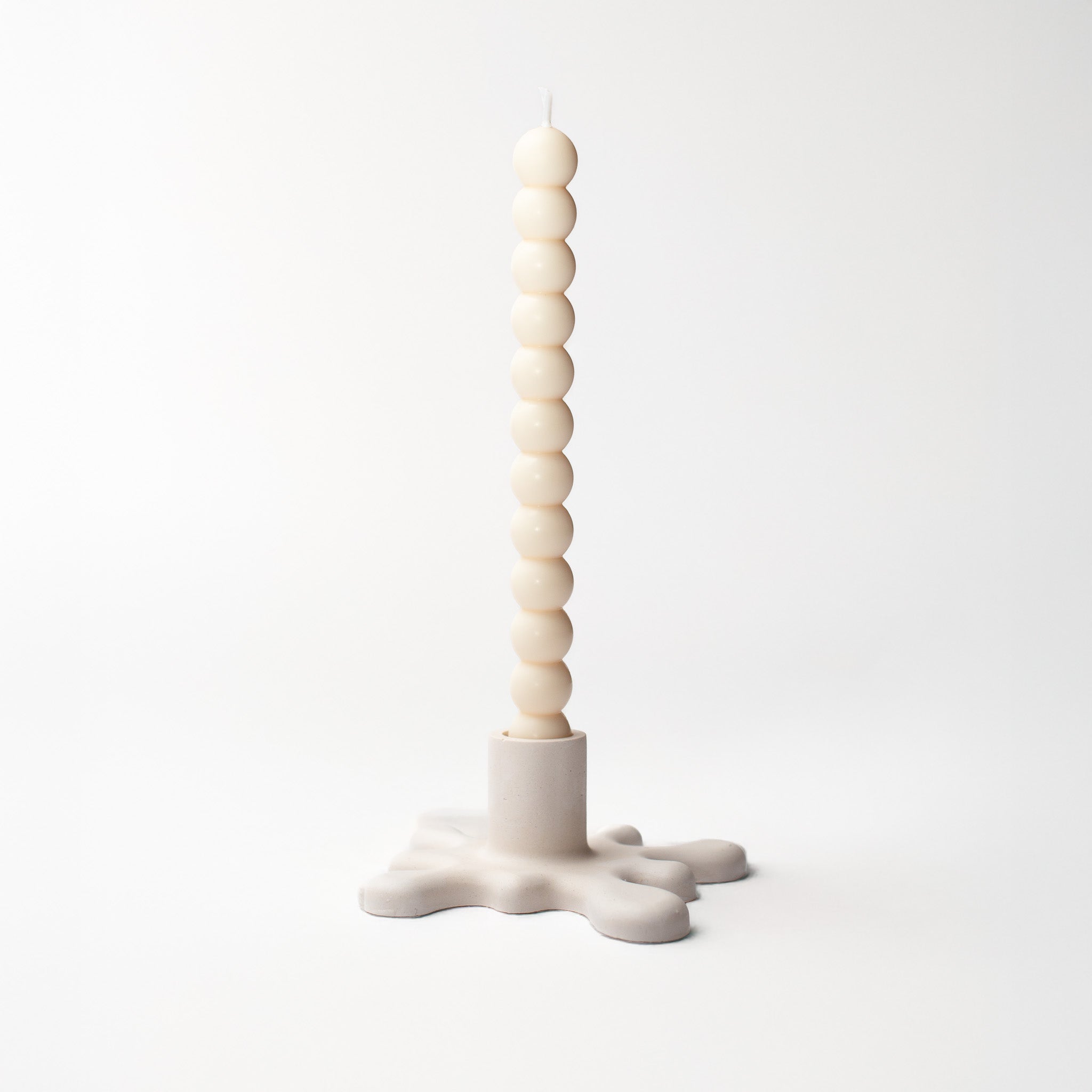 A uniquely designed candle holder that combines modern aesthetics with subtle playfulness. Its form stands out with sculptural lines and a decorative, stable base that provides both visual character and functionality. Perfect for long, decorative candles.