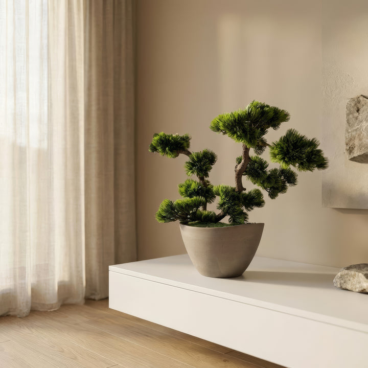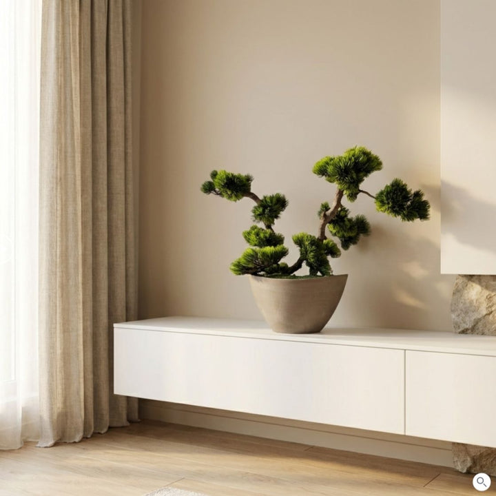 Stilingas dekoratyvinis bonsai suteikia interjerui ramybės ir natūralios harmonijos pojūtį. Subtili forma ir sodri žalia spalva puikiai dera minimalistiniuose, japandi ar natūralaus stiliaus interjeruose. Idealiai tinka svetainei, miegamajam ar darbo erdvei.