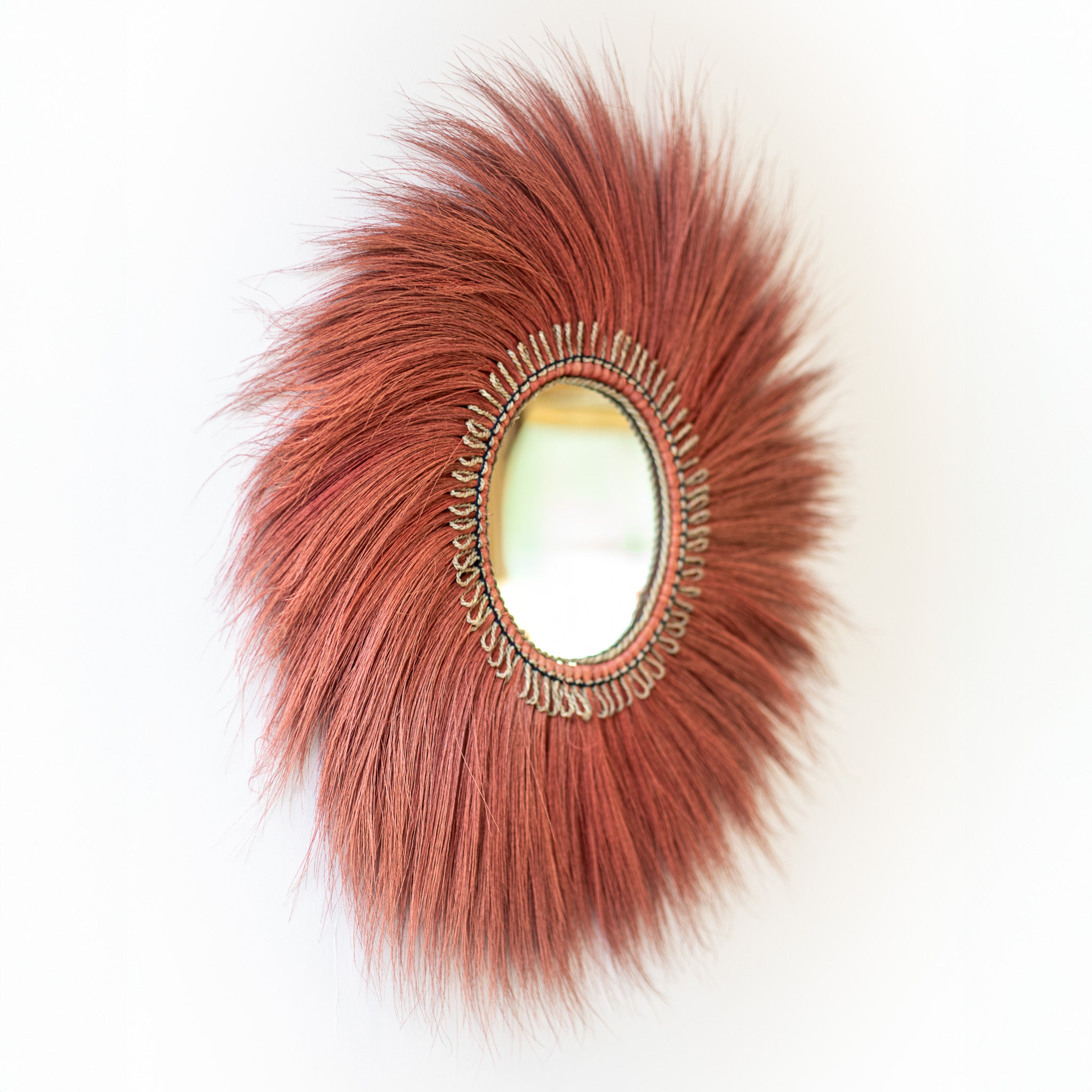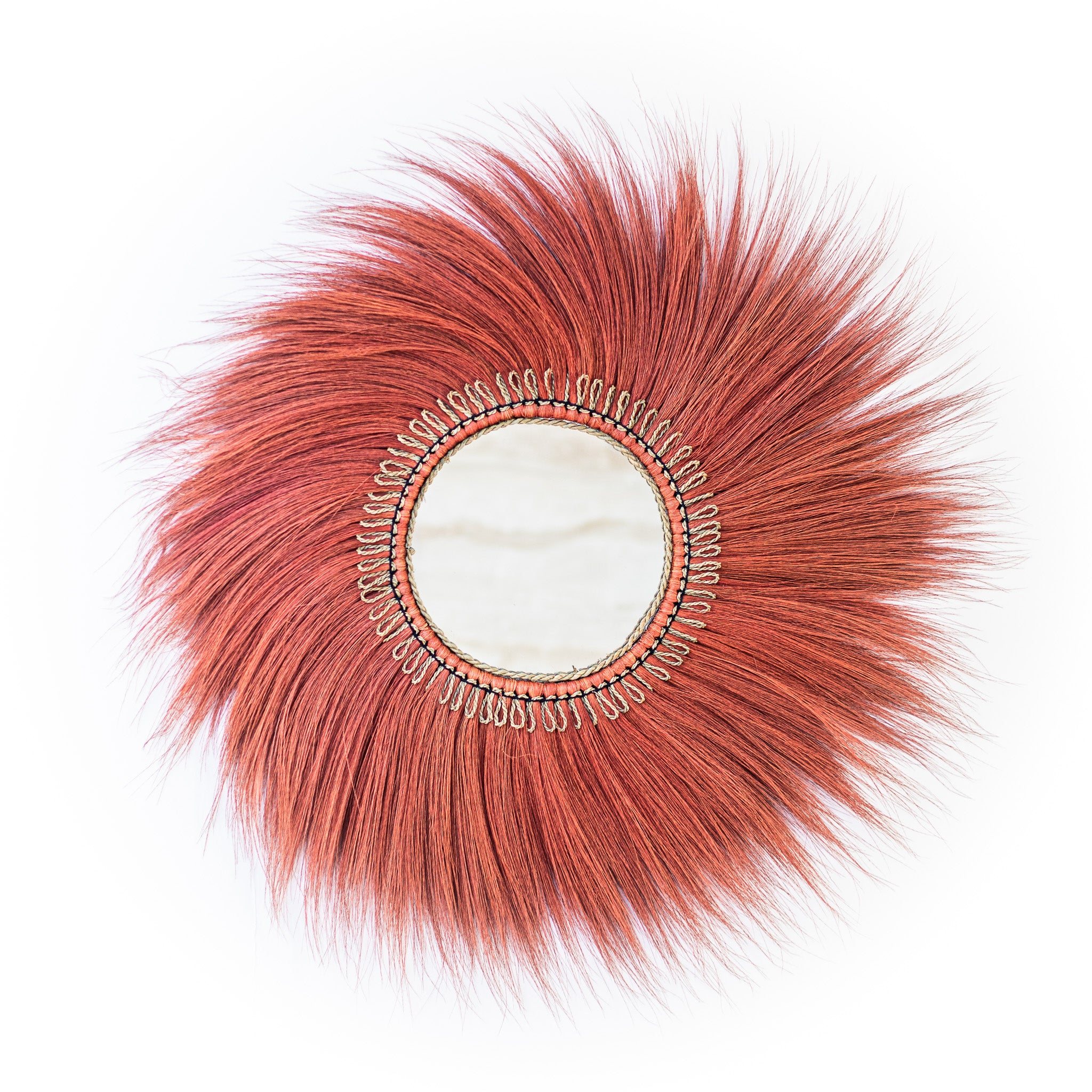Šis įspūdingas sieninis veidrodis – tai drąsus dizaino akcentas, suteikiantis interjerui charakterio, gylio ir išskirtinės estetikos. Saulės spindulius primenantis rėmas sukuria stiprų vizualinį efektą, o etninio ir boho stiliaus įkvėptas dizainas paverčia veidrodį ne tik funkciniu daiktu, bet ir meno objektu.