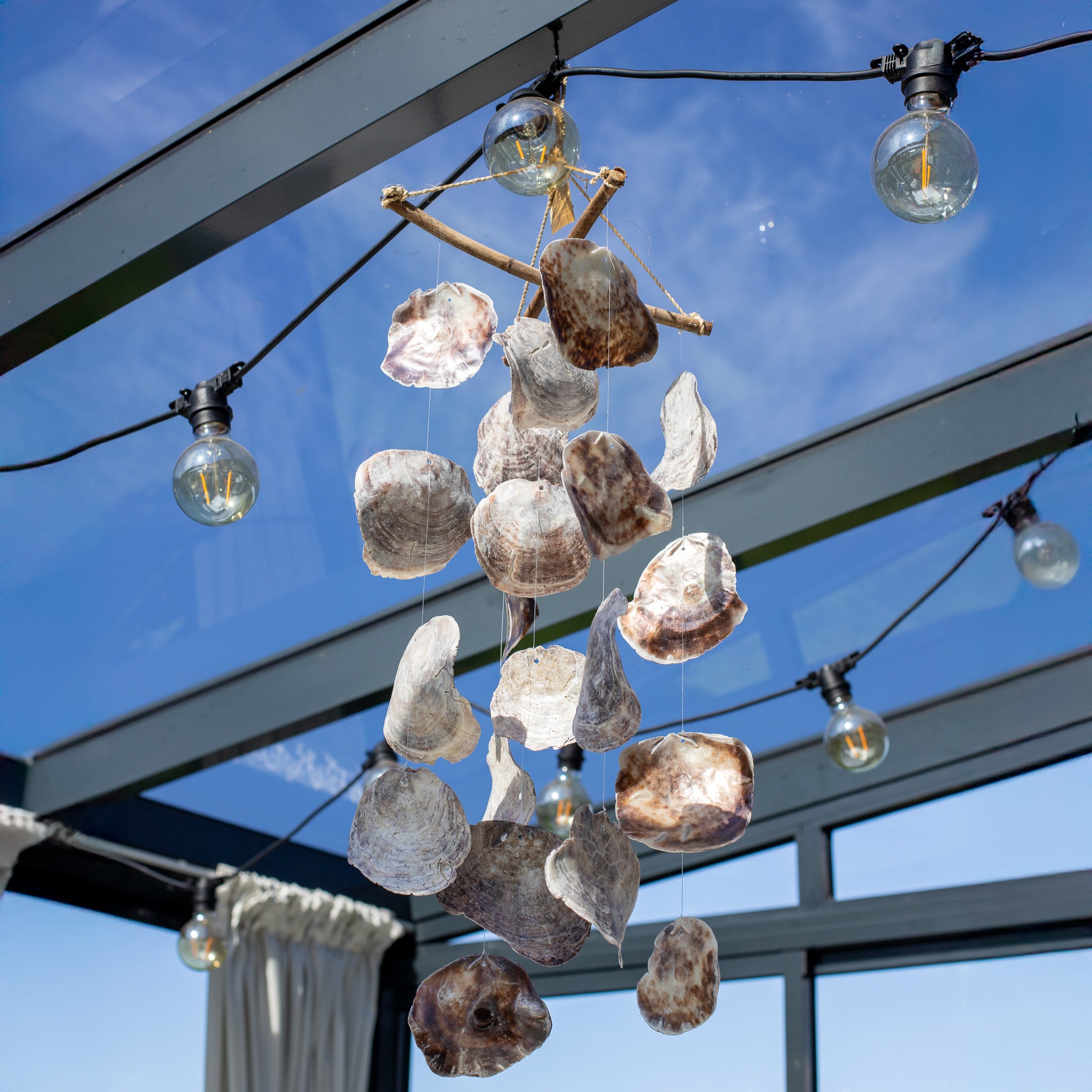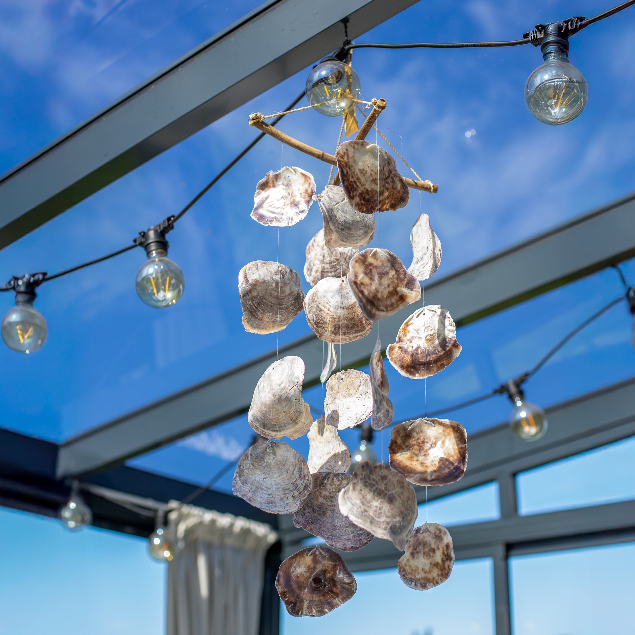 Kai pučia vėjas, kriauklės švelniai susiduria tarpusavyje, skleisdamos raminantį, šnabždesį primenantį garsą – tarsi bangų ošimas ar jūros dvelksnis. Saulės šviesoje jos subtiliai blizga, atspindėdamos šviesą ir sukurdamos žaismingą, raminančią atmosferą.