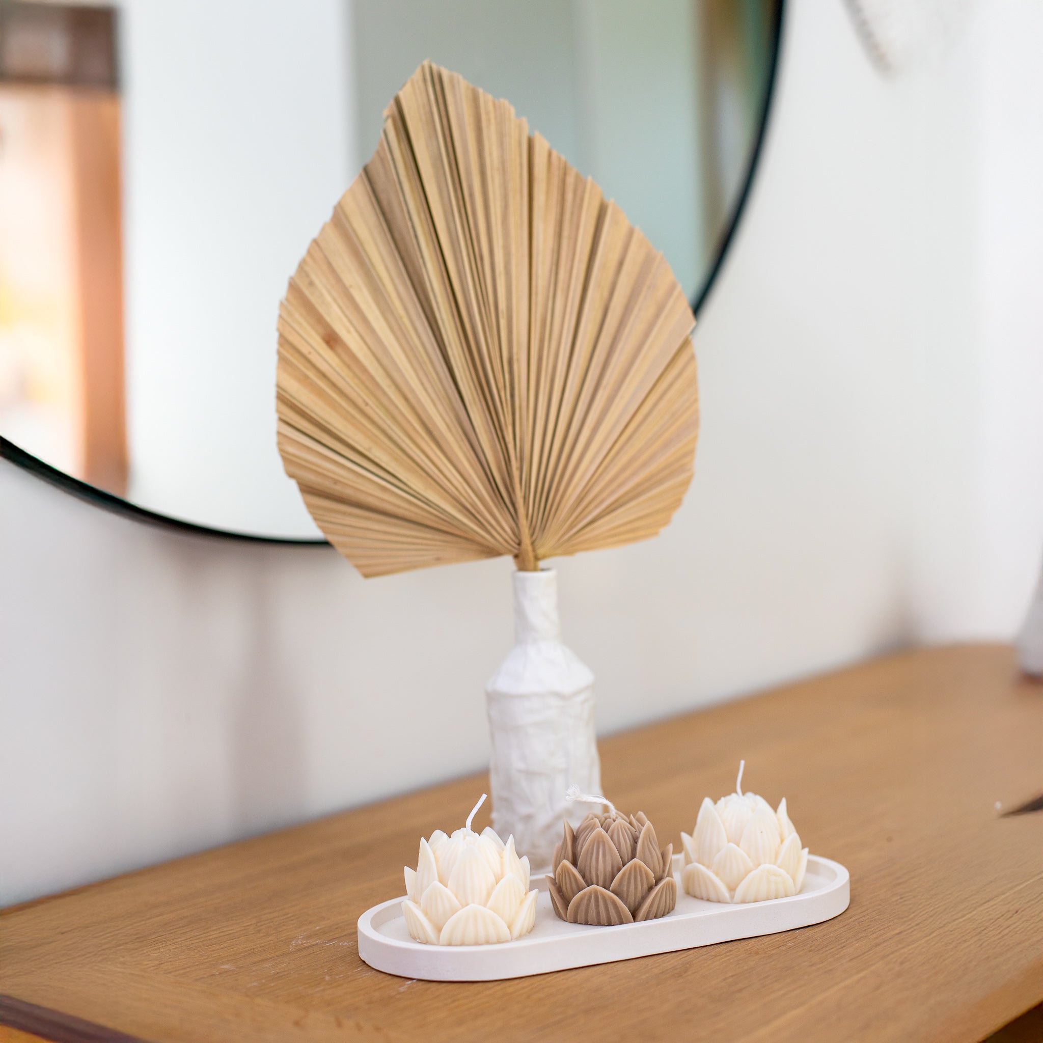 Įneškite egzotišką prisilietimą į savo aplinką su šiais natūraliais, dideliais ir meniškai apkarpytais džiovintais palmių lapais.